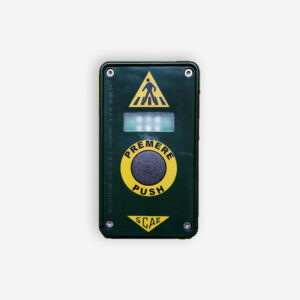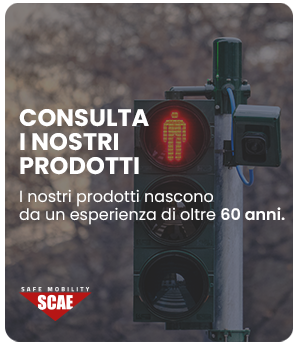 SCAE realizza diversi pulsanti per la chiamata pedonale, dal più semplice con tasto meccanico al più complesso con sensore touch a sfioramento, vibrazione e/o emissione sonora, display grafico e secondo switch tattile per la prenotazione del verde da parte di persone ipovedenti da abbinare ad un dispositivo acustico secondo quanto previsto dal Codice della Strada.